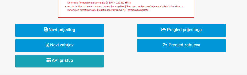- Ako su svi koraci uspješno napravljeni na glavnom ekranu E-ovrha će vam se pojaviti novi “gumb” s naslovom “API pristup” kao na slici dolje.