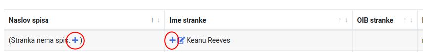 dodati klikom na „plus“ ikonu uz ime stranke za koju dodajemo spis.