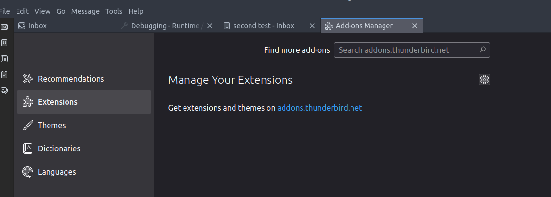 Sljedeći korak je u programu Thunderbird iz menija Tools na vrhu ekrana izabrati opcije Add-ons and Themas. Otvorit će se ekran za Add-onove.