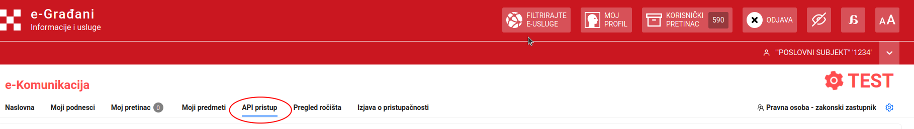 - Idite na glavni meni i odaberite opciju API pristup kao na slici dolje.
