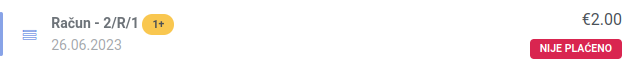 Za grupe Nedospjelo i Dospjelo u zadnjoj koloni se nalazi gumb Plaćeno kojim možemo račun proglasiti naplaćenim. On se tada "seli" u grupu Naplaćenih računa.