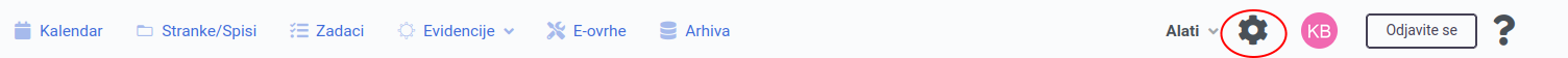 Da bi se dodao novi zadataka, bilješka,rok ili ročište u spis prvo je potrebno otvoriti spis. To se može napraviti tako da se klikne na Stranke/Spisi na vrhu ekrana. Nakon što se otvori popis stranaka i/ili spisa potrebno je kliknuti spis na koji se želi dodati zadataka,rok, ročište ili bilješka.