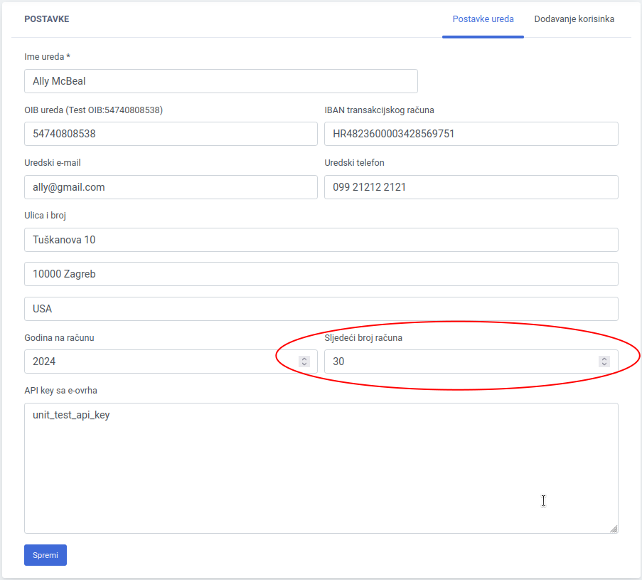 Numerička vrijednost koja se tu upiše bit će stavljena na prvi sljedeći račun koji kreirate. Nakon toga program će sam nastaviti uvećavati brojač računa.