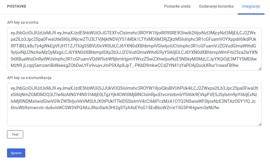 Napomena: Kao što je gore navedno ministarstvo pravosuđa je odredilo da se tokeni mmoraju obnavljati. Kada vam token istegne (ovisi o vremenu trajanja koji ste izabrali) cijeli postupak će se morati ponoviti.